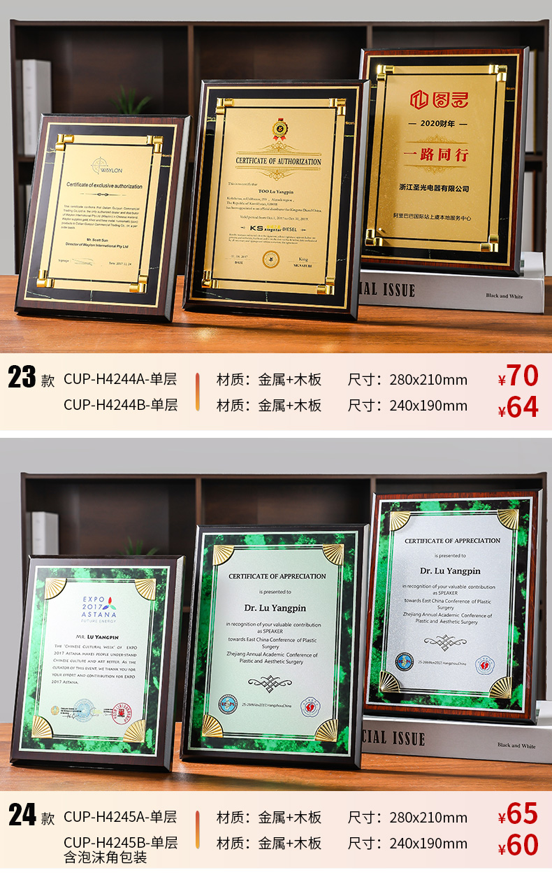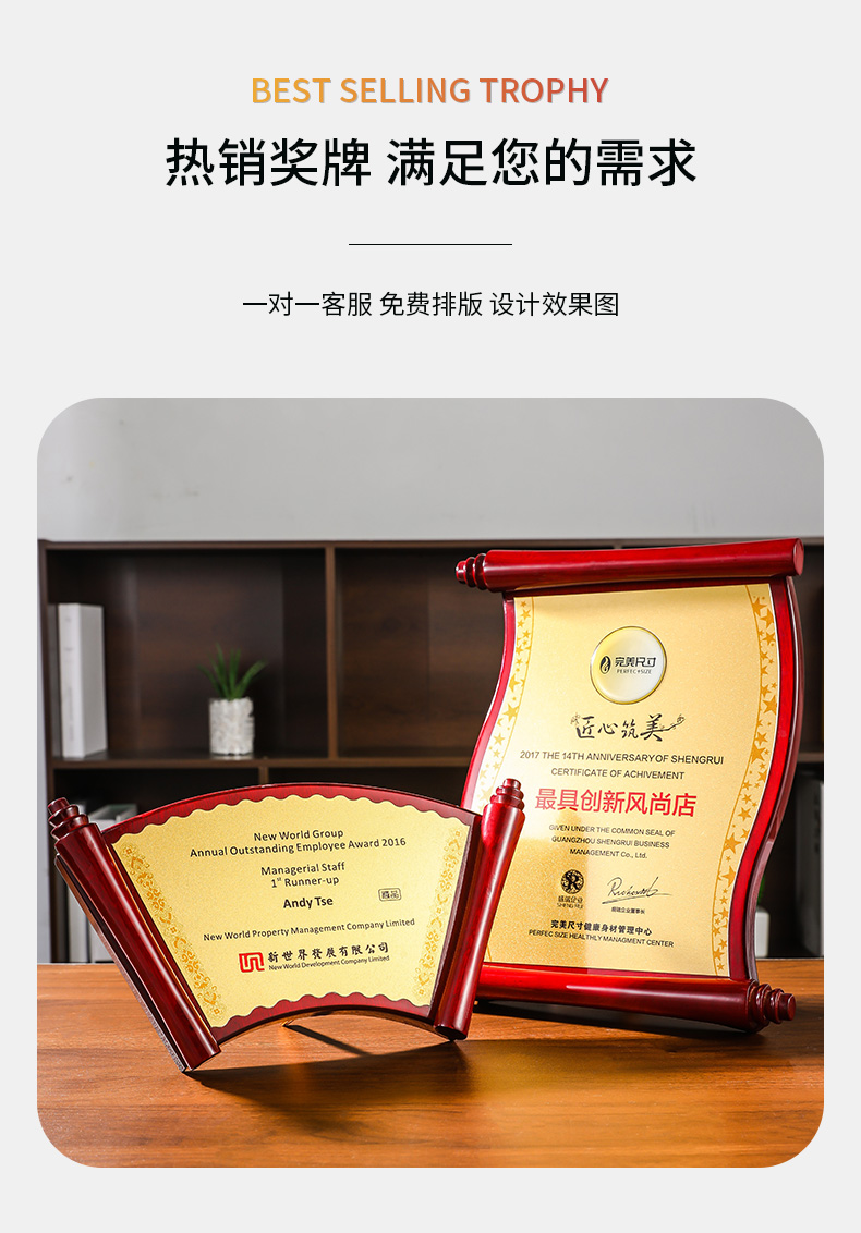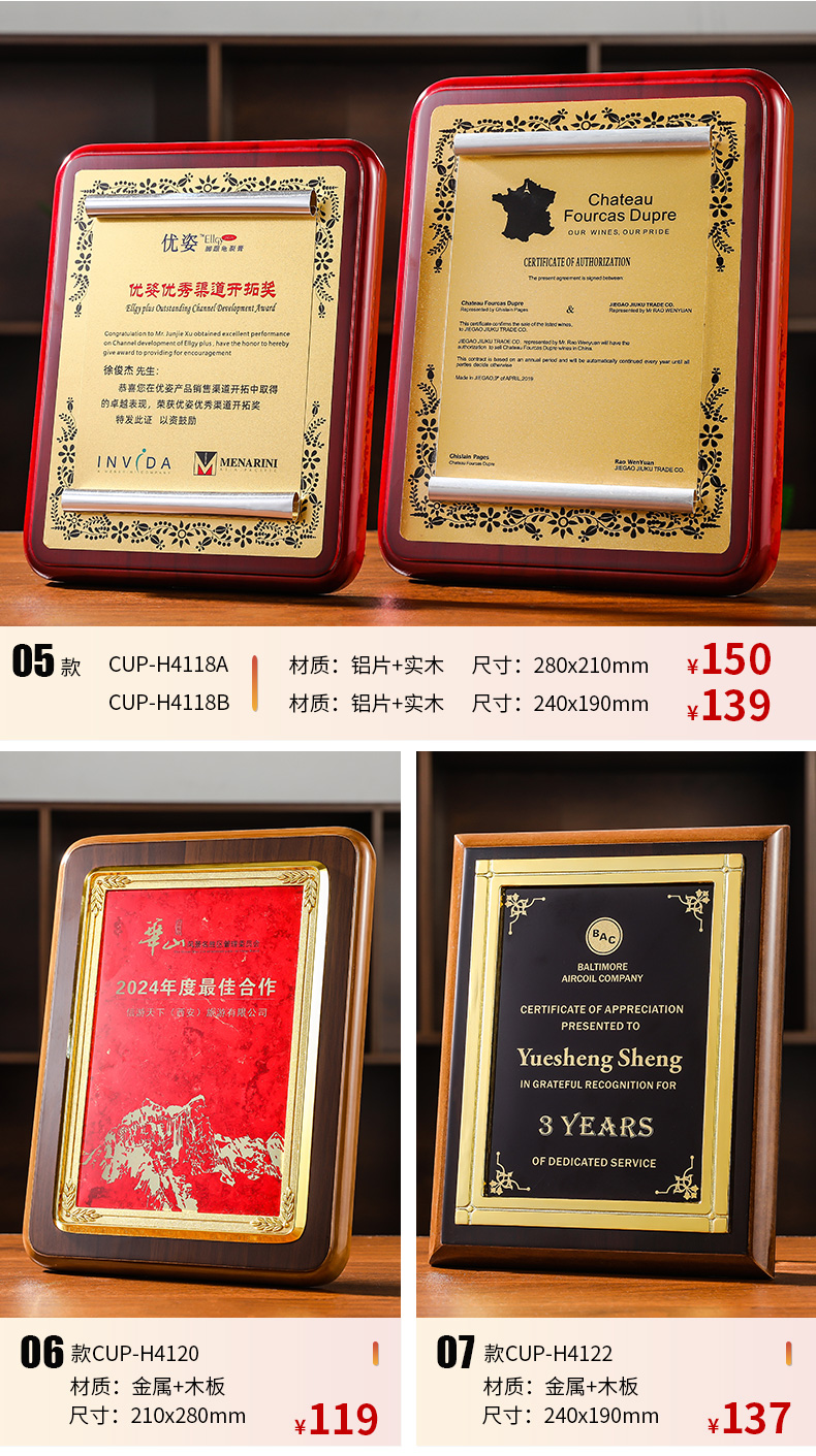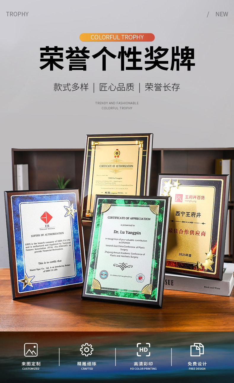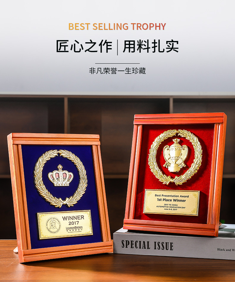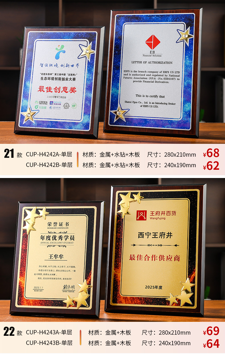 608 / 木质麦穗五星奖牌异形奖牌授权牌挂墙牌木托荣誉牌会员颁奖授权书