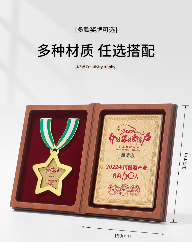 609 / 经典木质麦穗五星奖牌异形奖牌授权牌挂墙牌木托荣誉牌会员颁奖授权书
