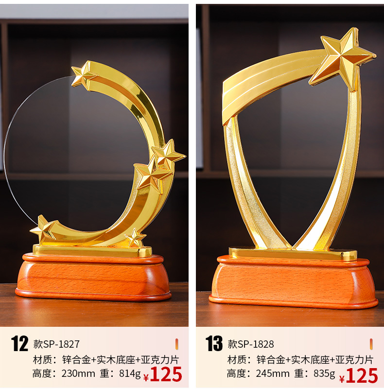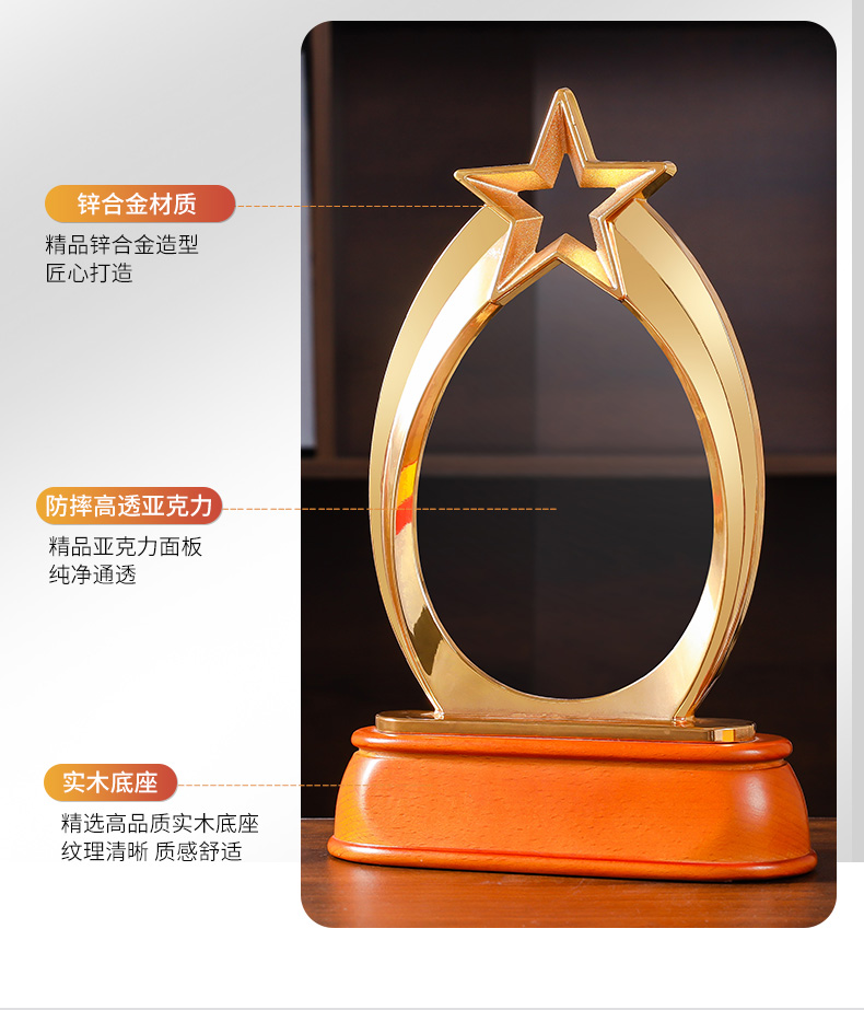 611 / 五角星亚克力奖杯定做个性创意刻字金属奖牌奖杯年会颁奖纪念定制