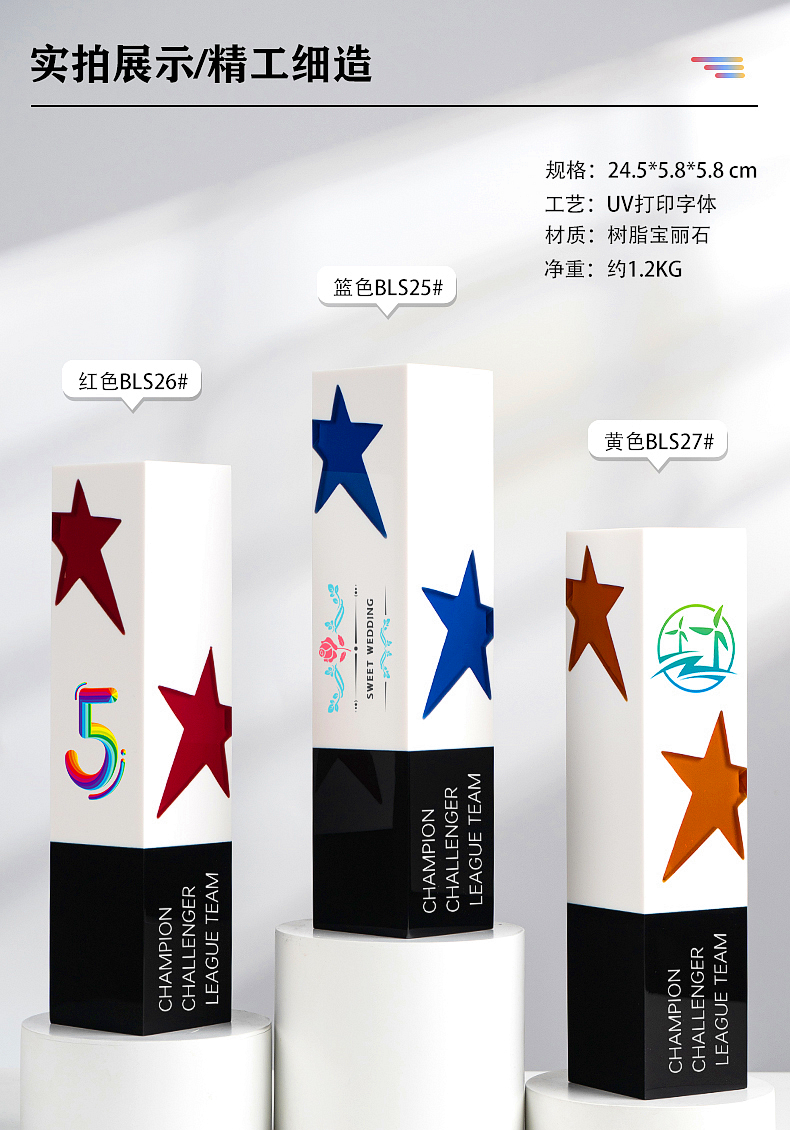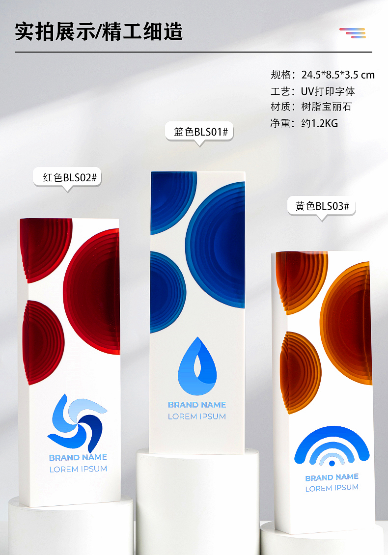 433 / 高档新款树脂宝丽石奖杯定制销售冠军比赛年会订制荣誉牌奖牌创意