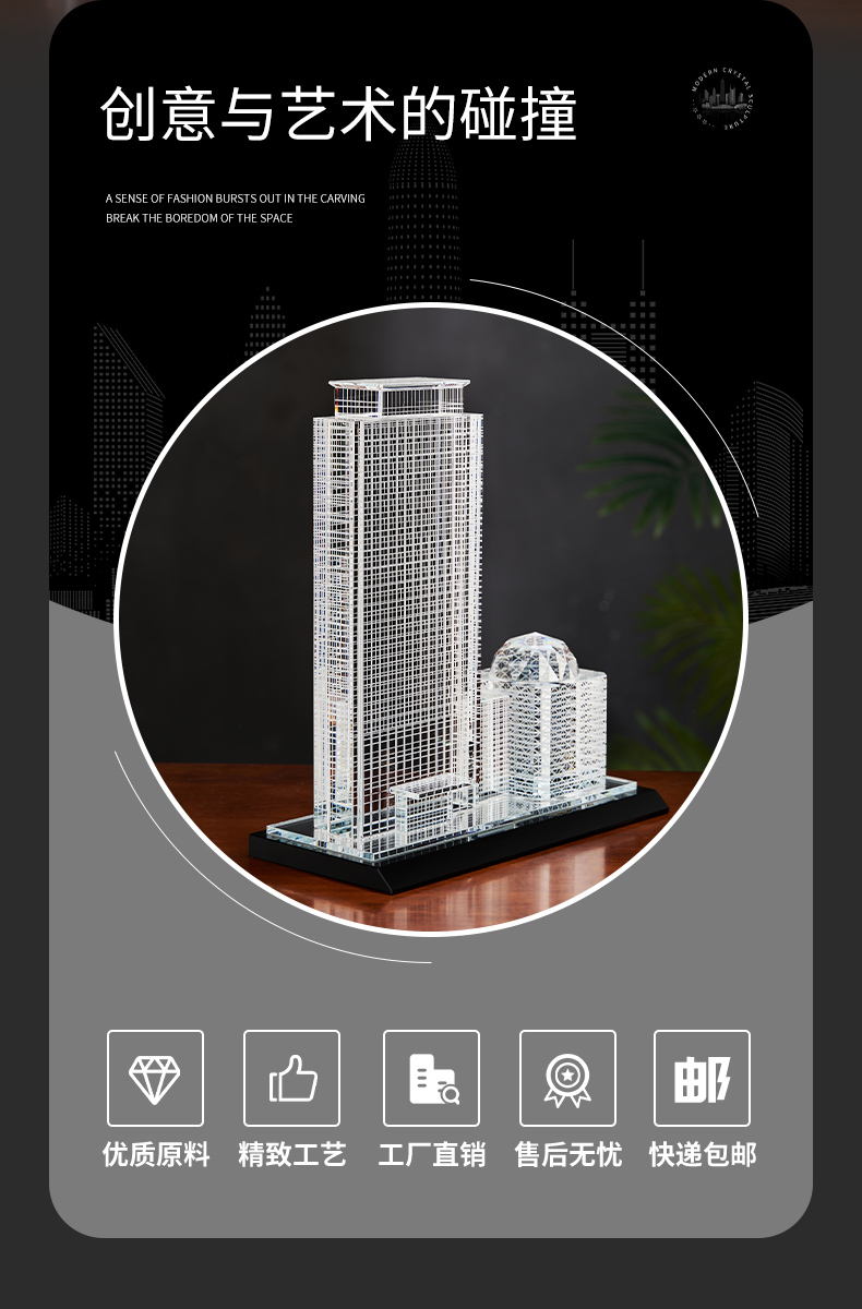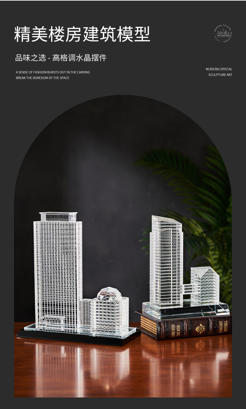 904 / 【水晶楼模】水晶建筑模型礼品企业伴手礼定制塔桌面庆典纪念办公室楼摆件大厦