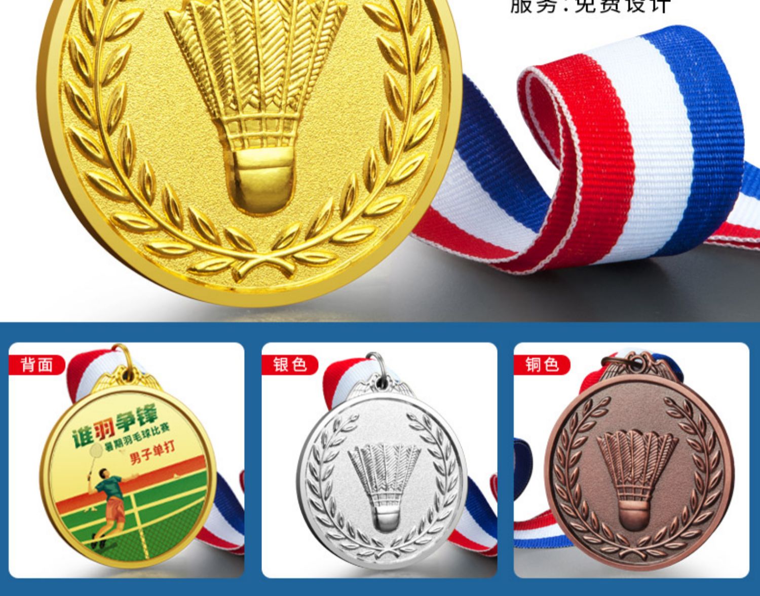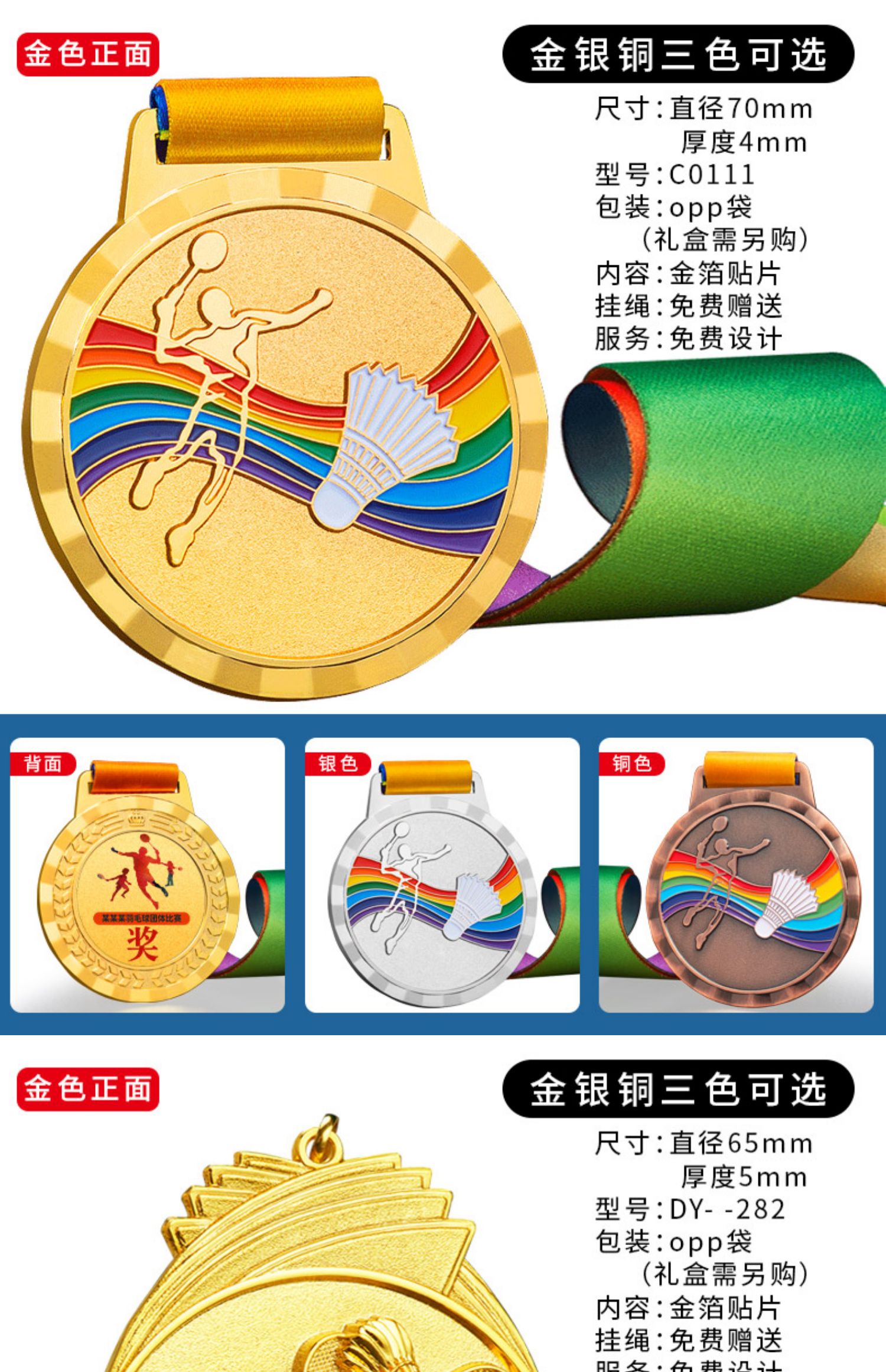 873 / 羽毛球奖牌定制金属金箔金牌运动会冠军颁奖体育赛事荣誉挂牌定做