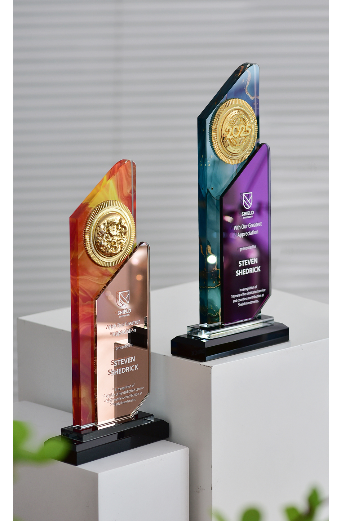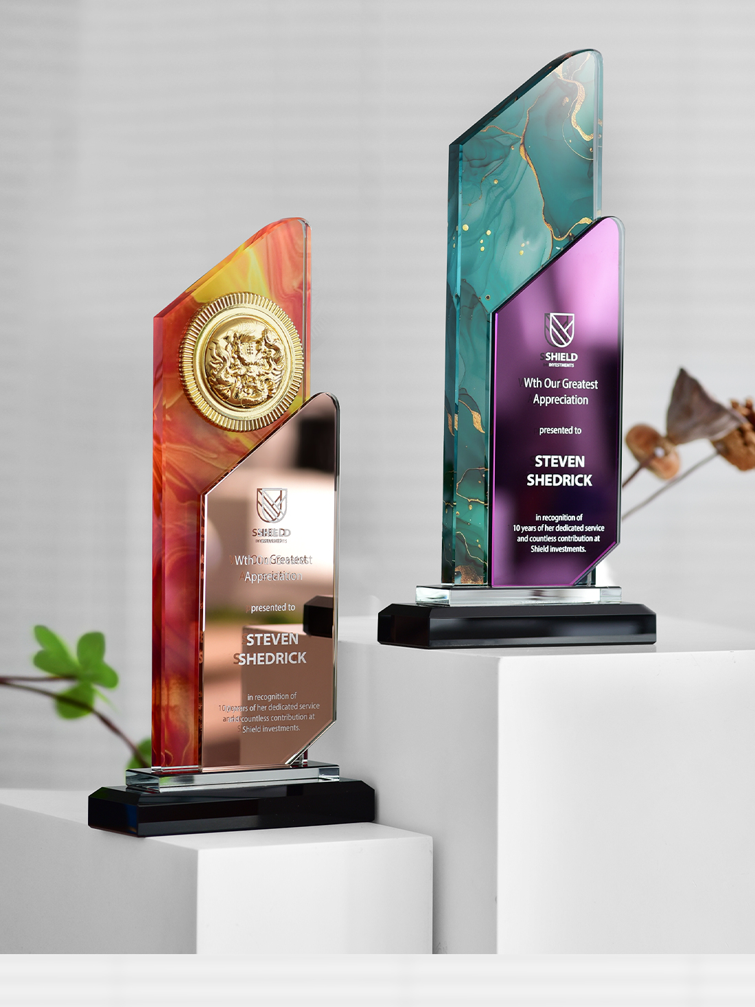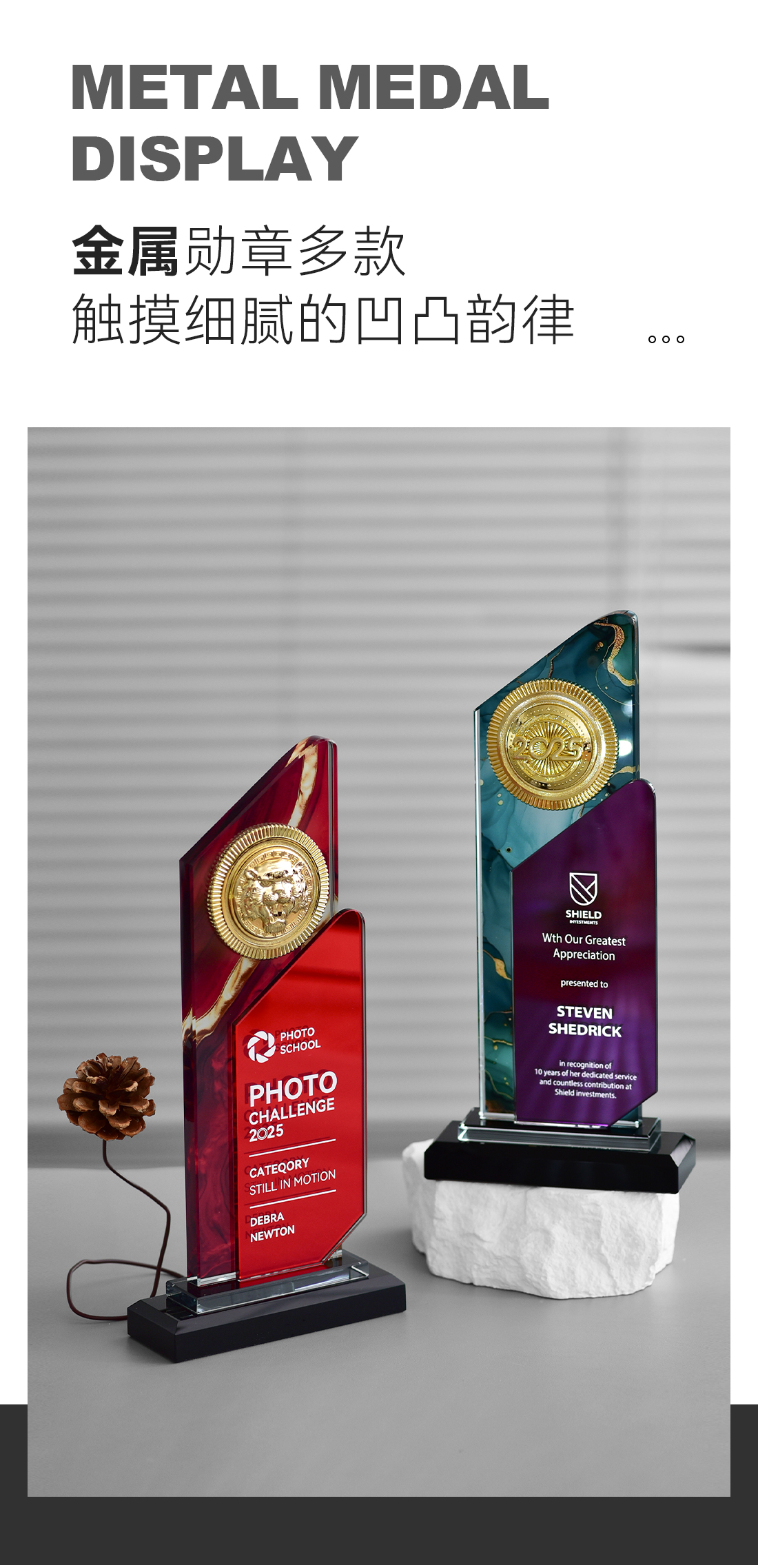 【大理石水晶奖牌