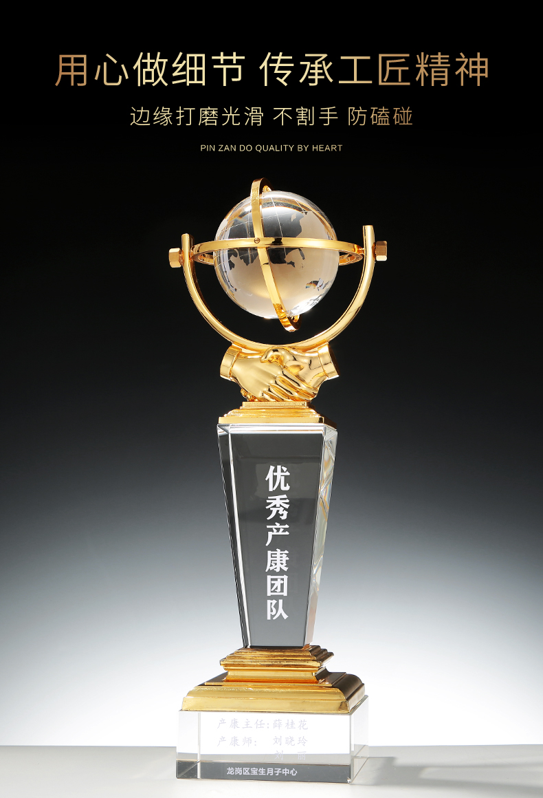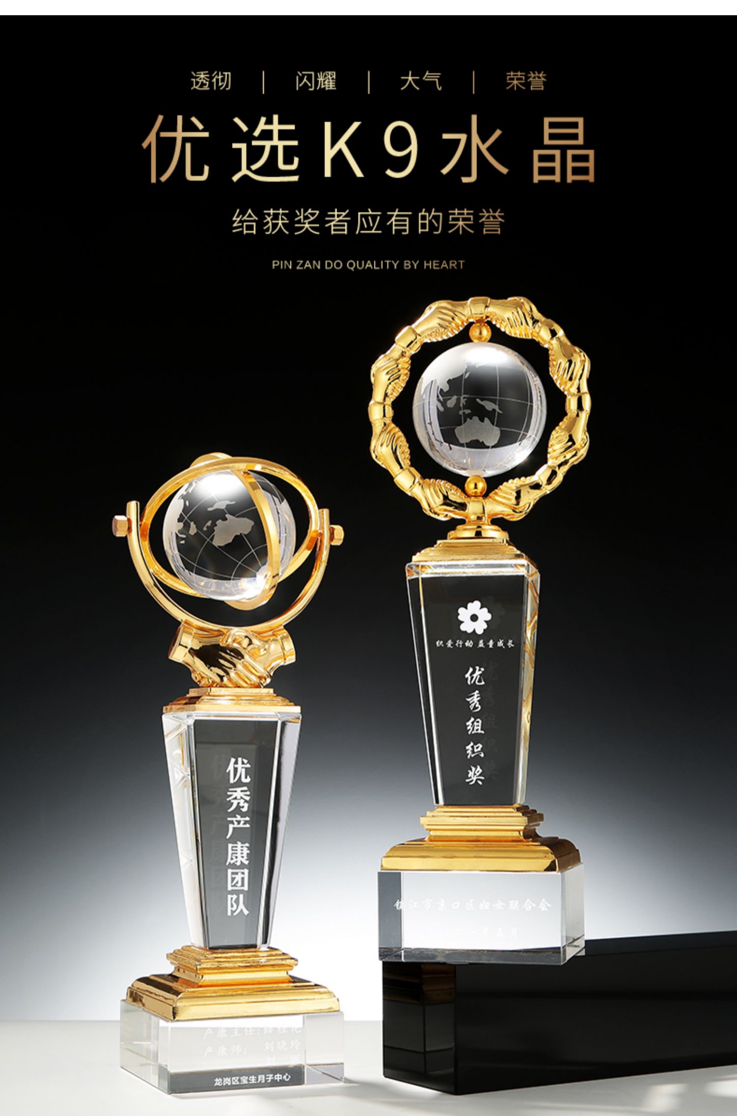 1004 / 【掌上世界】创意金属奖杯定制供应商水晶地球仪颁奖活动纪念品团队合作共赢