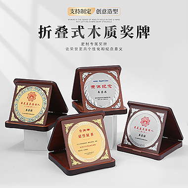 525 / 成都角压花铝片奖牌创意奖牌定制定做胡桃木质荣誉牌匾…