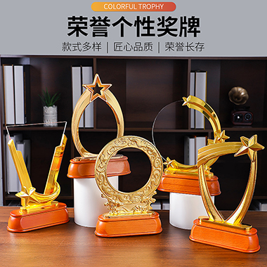 611 / 成都五角星亚克力奖杯定做个性创意刻字金属奖牌奖杯年…