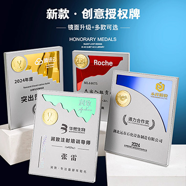 602 / 成都新款金属铝片授权牌奖牌可挂可摆荣誉牌匾铜牌证书…