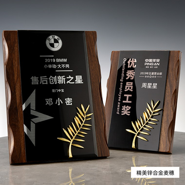 609 / 成都经典木质麦穗五星奖牌异形奖牌授权牌挂墙牌木托荣…
