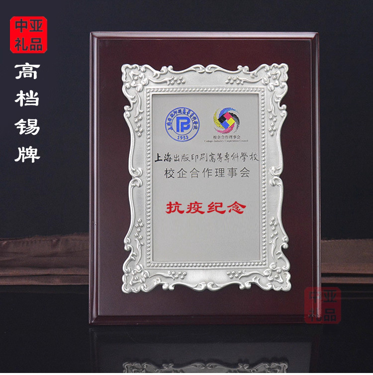503 / 成都纯锡纪念奖盘定制logo高档金属荣誉奖牌办公摆…