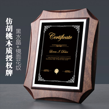 511 / 成都黑胡桃实木高档奖牌定制木质水晶授权牌加盟代理经…