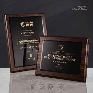 570 / 成都浮雕胡桃实木奖牌定制定做聘书加盟授权牌周年纪念…