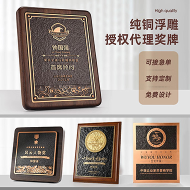 588 / 成都铜浮雕金属实木奖牌定制定做授权牌聘书高档颁奖荣…
