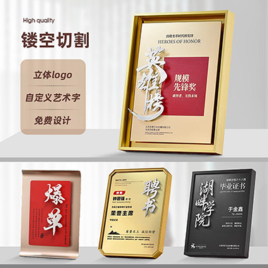 585 / 成都创意金属奖牌定制高档颁奖荣誉证书荣誉牌匾浮雕授…