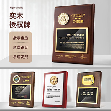 1006 / 成都【实木奖牌授权牌】高档奖牌定制定做荣誉聘书加…
