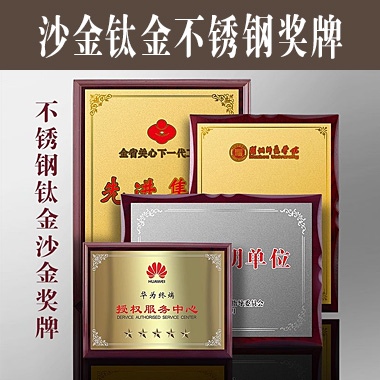 508 / 成都沙金钛金不锈钢堆金奖牌定做腐蚀铜牌木托授权牌金…